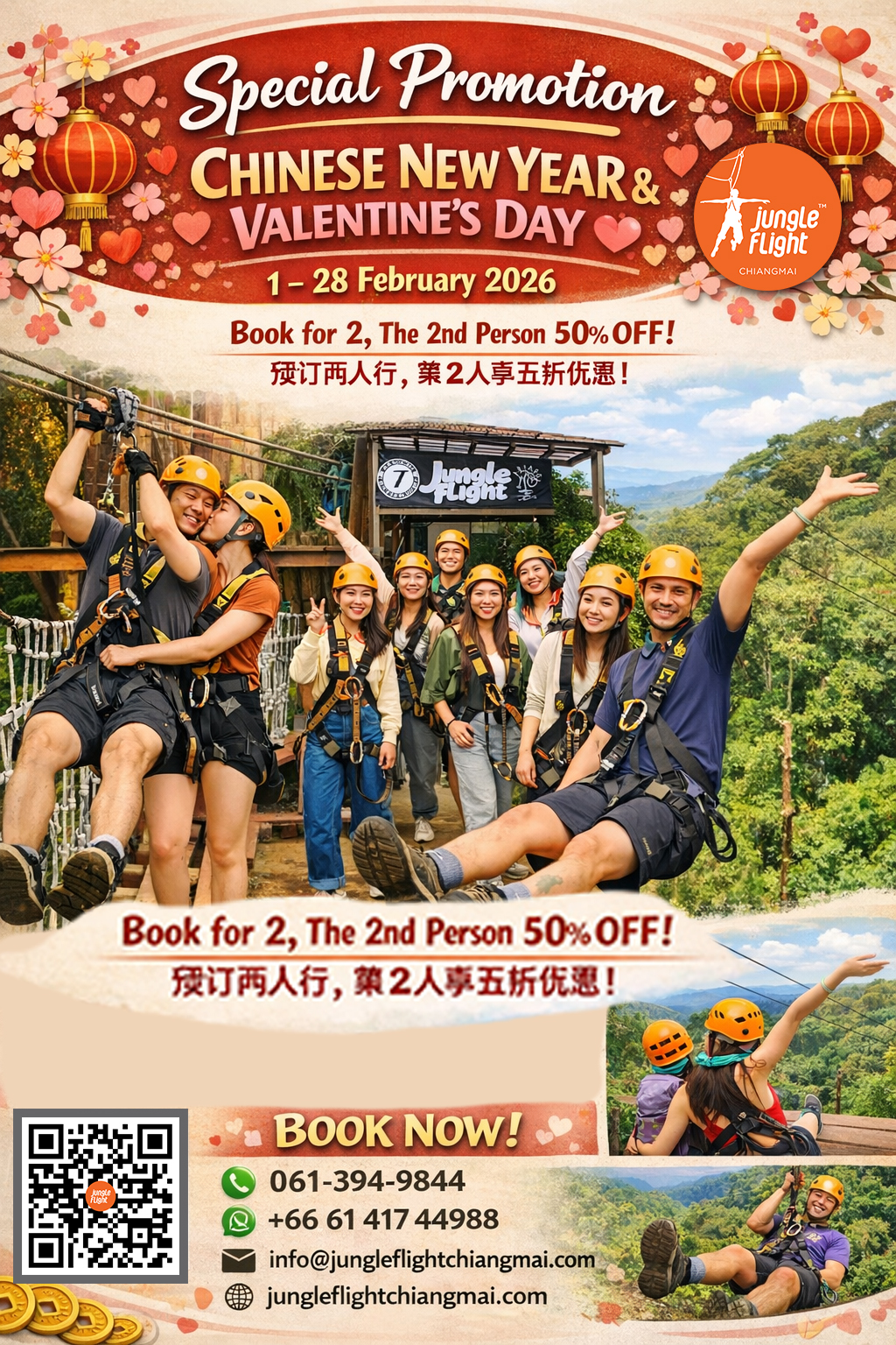 Situated in lush, mountain rainforest just an hour drive from Chiangmai, Jungle Flight’s eco-adventure is a truly unforgettable experience, discover breathtaking views and adrenaline-pumping excitement, as you’re flying through the treetops.